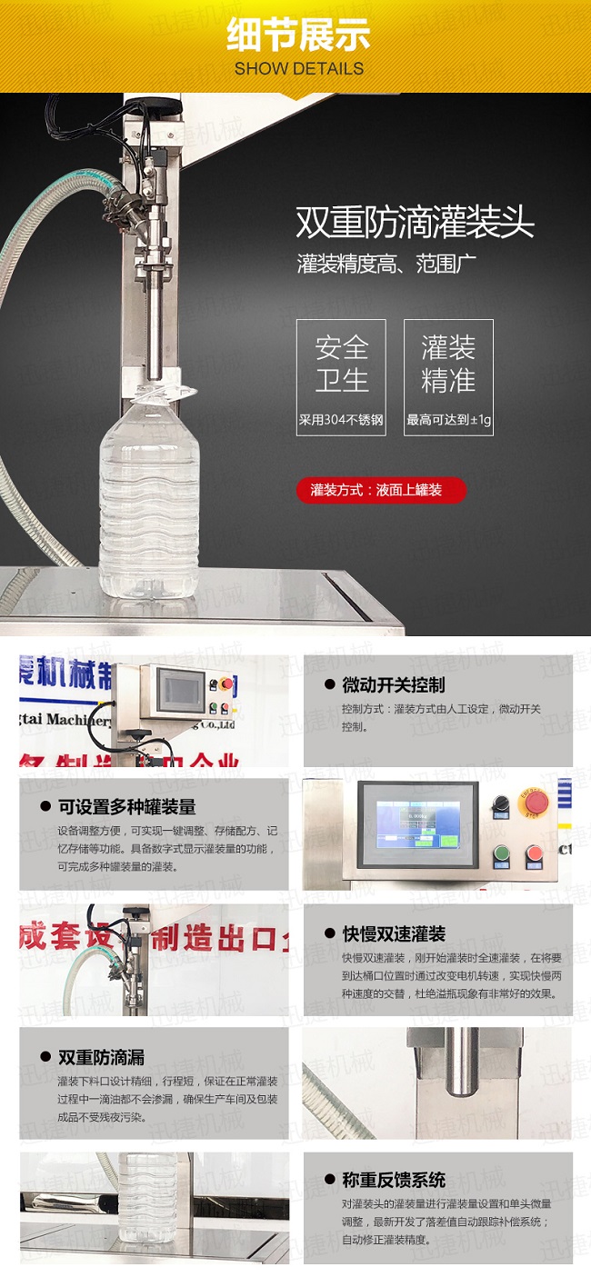 微量調(diào)整,稱重灌裝機(jī)的精度在于落差值的大小【也就是灌裝嘴與容器的距離之間,灌裝完后