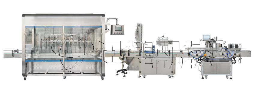 自動油類灌裝旋蓋貼標流水線客戶現場視頻