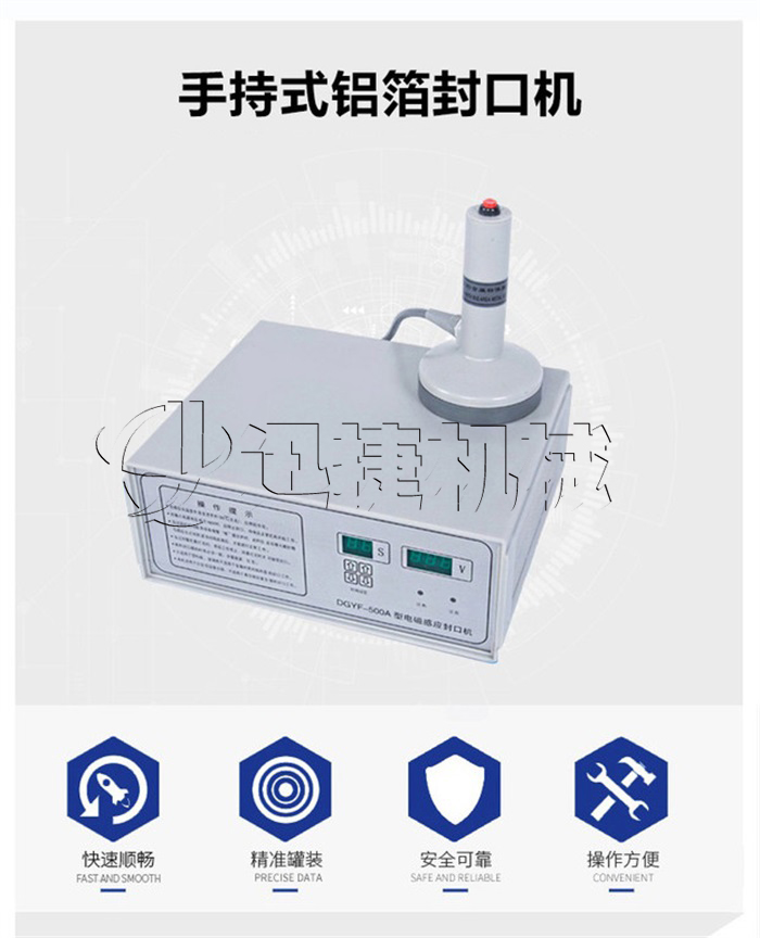 該該封口機為手持式鋁箔封口機,是一種便攜式電磁感應加熱封口設備,專為制藥、化工、農藥、食品、化妝品、輕工行業對容器進行鋁箔嚴密封口,封口材質使用廣泛。