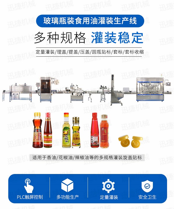 大豆油灌裝機采用流量計式計量灌裝原理,多項技術認證,適用于各種規格(1-5升)的南瓜籽油、榛子油、牡丹籽油、芝麻油、山茶油、亞麻籽油、棉籽油、橄欖油、大豆油、玉米油、菜籽油等食用油灌裝。設備采用旋轉編碼器計量,保證了1%的灌裝精度,在保證灌裝精度的同時,提高了20%-35%的灌裝速度,操作簡單,維護方便,節約人工成本,生產效率更高。